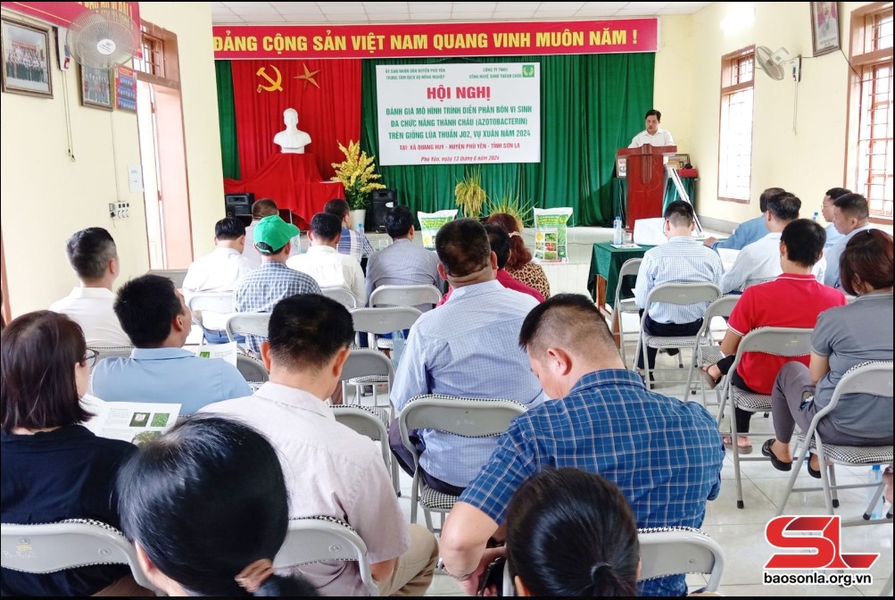 Ngày 13/6, Trung tâm dịch vụ nông nghiệp huyện Phù Yên đã phối hợp với Công ty TNHH Công nghệ xanh Thành Châu (quận Hoàng Mai, thành phố Hà Nội), tổ chức Hội nghị đánh giá kết quả mô hình trình diễn phân bón vi sinh Thành Châu (Azotobacterin) vụ xuân năm 2024.